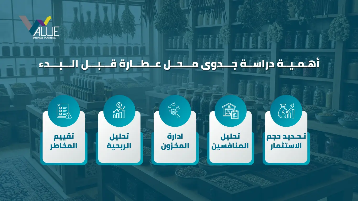 تبرز أهمية دراسة جدوى مشروع العطارة في قدرتها على التنبؤ بالتحديات وتحويلها إلى فرص نمو حقيقية من خلال: